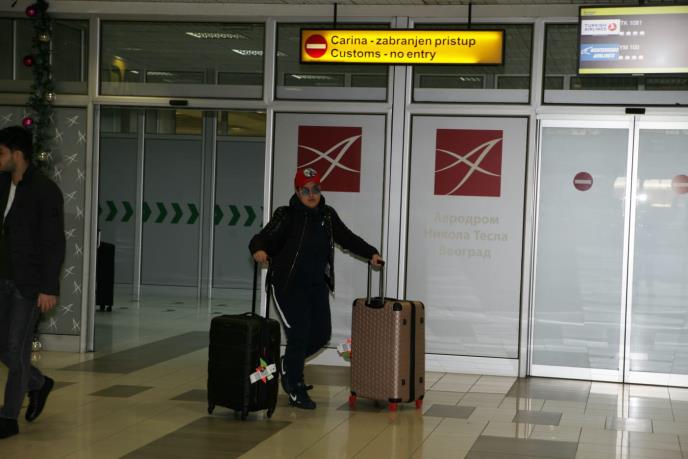 U Srbiju je imala takav doček da nije znala šta ju je snašlo. Sa dva kofera, kapom i sunčanim naočarima krenula je prema izlazu zbunjena zbog neočekivanog dočeka.
