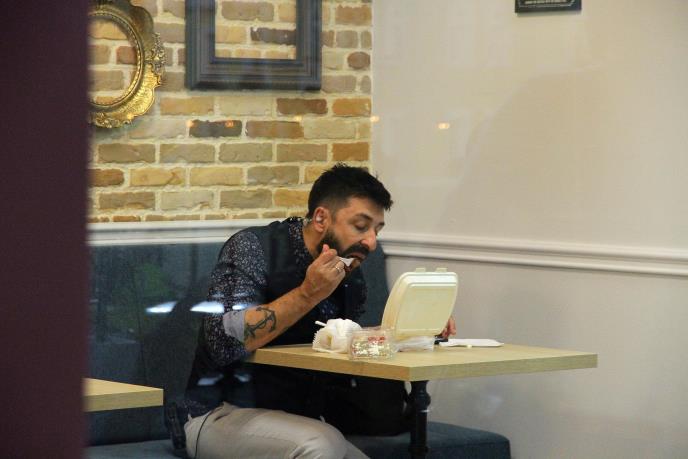 "Redovno dolazi po klopu za poneti. Ali sa slabo sedi. Vodi rečuna o ishranu i dolazi po šest jaja, palentu i, kako on voli da kaže, "klot", odnosno šest belanaca. Mnogo je zabavan. Kad se odmara nije toliko hiperaktivan, ali je super lik", kaže Jovana.