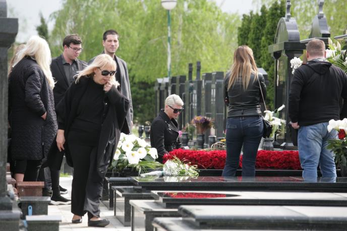 Kraj majčinog groba za četrdesetodnevni pomen, uz nju stajali su potreseni prijatelj i menadžer Zoran Birtašević koju ju je sve vreme tešio, tetka Danijela, kao i brat sa očeve strane.