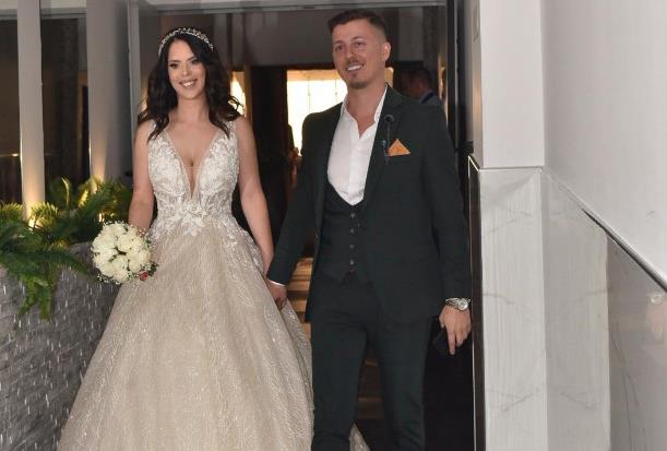Dinča je poneo tamno zeleno odelo, u svom stilu, a mlada je blistala u venčanici, iako je sama priznala da ju je probala samo 2 puta pre svadbe.