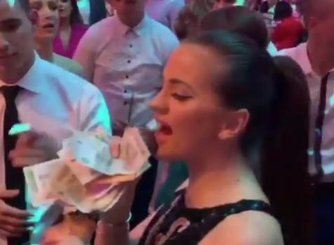 Pevačica je pevala pesmu svoje koleginice Ane Bekute, a zajedno sa mikrofonom je držala veliku količinu novca koje je dobila na nastupu.