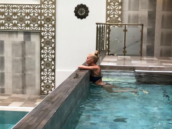U slobodno vreme voditeljka voli da se osami i odmori, pa sate provodi u spa centru. Uz hladna pića kojim se osvežava, ona u bazenu traži spas od vreline. I za to joj apsolutno ne treba društvo.