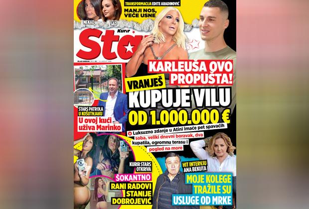 Karleuša propušta ovo: Vranješ kupuje vilu od MILION EVRA, luksuzno zdanje u Atini imaće pet spavaćih soba, veliki dnevni boravak, dva kupatila, ogromnu terasu i pogled na more. Šokantno - Kurir Stars otkriva rane radove Stanije Dobrojević. Pročitajte hit intervju sa Anom Bekutom: Moje kolege su tražile usluge od Mrke. Stars patrola u Košutnjaku: Pogledajte u kakvoj kući uživa Marinko Rokvić. Plus transformacija Edite Aradinović: Manji nos, veće usne!