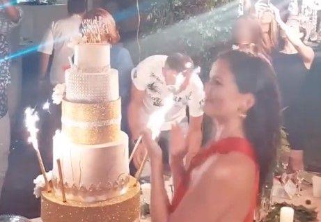 Kada je poslužena višespratna torta, oduševljenu pevačice nije bilo kraja.