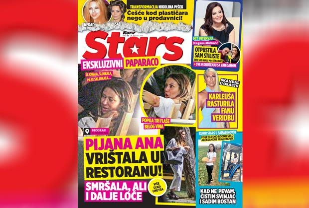 Ekskluzivni paparaco: Ana Nikolić smršala, ali i dalje loče! Popila tri flaše belog vina, pa pijana vrištala u restoranu! Pročitajte hit intervju sa Draganom Mirković: Otpustila sam stiliste, zato sad hvale moj stajling; plus sve o druženju sa Žan Klodom van Damom. Skandal u Orašju: Jelena Karleuša rasturila fanu veridbu. Kurir Stars u Samarinovcu - posetili smo rodno selo Aleksandre Mladenović: Kad ne pevam, čistim svinjac i sadim bostan.