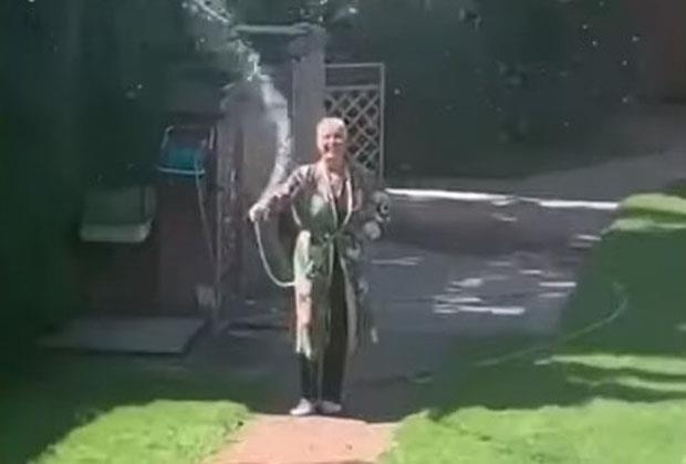 Lepa Brena je ponovo "uhvaćena" u situaciji u kojoj nismo navikli da je vidimo i to, opet, zahvaljujući sinu Viktoru. On je sa terase vile na Bežanijskoj kosi snimio pevačicu u kućnom ogrtaču kako zaliva travnjak u dvorištu.