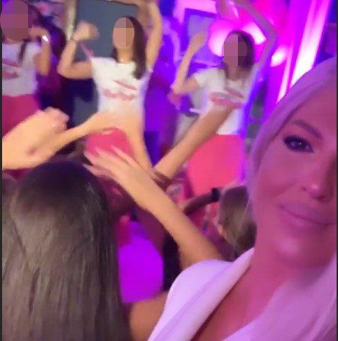 Karleuša se u restoranu pojavila u društvu slavljenica u belom odelu i ponovo sa dugom kosom.