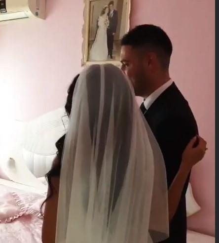Katarina je u beloj venčanici izrazito dubokog dekoltea, dok je Ljuba u crnom odelu i beloj košulji. Par se sve vreme grlio i razmenjivao poljupce, a iz Katarininog doma uputili su se u crkvu.