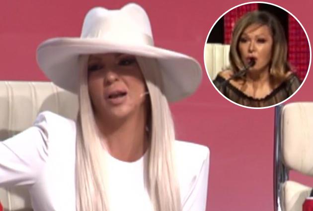 "Da vam kažem, ja ne razmišljam tako kao što vi to. "Kako ćeš pred 100.000 ljudi?" Ne, to je jako pogrešno. Prvo, ako ima imalo savesti i odgovornosti ima tremu. Smo budala nema tremu i neko ko peva na plejbek. Stop, stop", govorila je pevačica Karleuši koja je pokušala da joj dobaci.