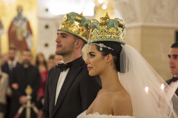 Bogdana Ražnatović je tokom dana i na crkvenom venčanju nosila venčanicu u kojoj se njena svekrva Ceca udala za Željka Ražnatovića Arkana, a za građansko venčanje je odlučila da se presvuče.