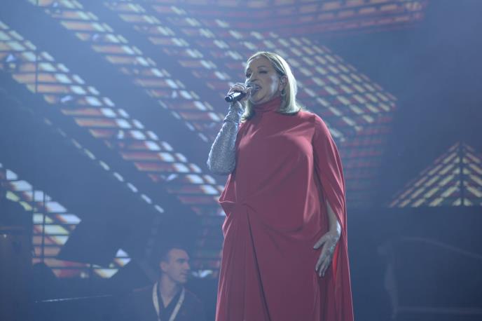 Pevačica je pevala svoje najveće hitove, a na bini se pojavila u crvenoj haljini i na ruci je nosila srebrn rukav.