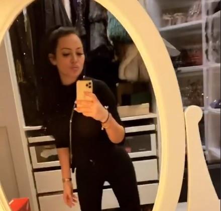 Prvo što je prikazala je deo dnevnog boravka i kuhinje, a zatim je prešla u garderober.