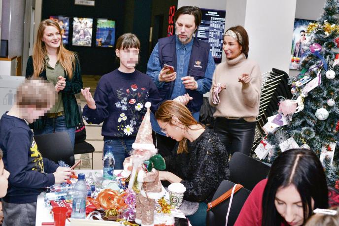 U prazničnoj atmosferi koja je ispunila hol Kombank dvorane, uz ukrašavanje novogodišnje jelke, pesmu i darivanje, održana je prva od dve radionice Deca pomažu deci.