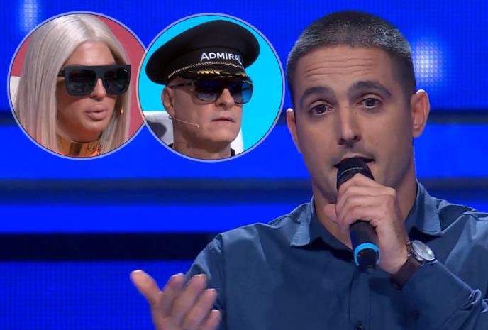 "Nisam navikao da mi mikrofon stoji kod usta, više volim da ga nabijem...", rekao je takmičar, misleći na stalak, a Jelena Karleuša se odmah nadovezala: