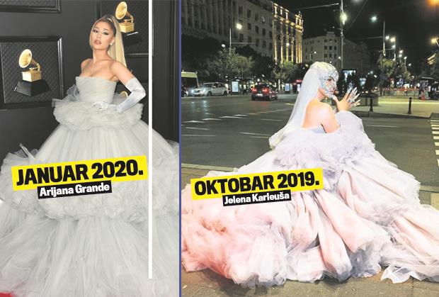 Reč je o raskošnoj bledosivoj haljini s karnerima, u kojoj pevačica pozira sedeći. Baš kao i Arijana. Jelena nije mogla da ostane nema na evidentnu kopiju koju je svetska zvezda napravila. Uz svoj komentar, Karleuša je postavila i fotografije: svoju iz oktobra 2019. i Arijaninu od pre dva dana:
