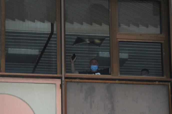 Naime on je sa prozora mahao reporterima, pa je onda uzeo mobilni telefon da uslika situaciju koja se dešavala ispred suda.