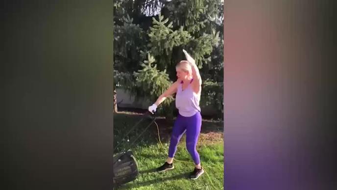 Pevačica je uzela kosilicu i sunčan dan iskoristila kako bi ošišala travu, a usput je i odradila trening pa čak i zapevala "ori, Mile, al duboko" baštu