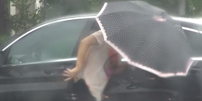 Na sebi je imala helanke, široku majicu i turban na glavi, a budući da je tog dana padala jaka kiša, Anu ni kišobran nije u potpunosti spasio da ne pokisne "kao miš".