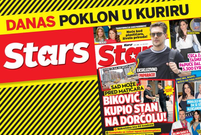 Ekskluzivni paparaco! Biković kupio stan na Dorćolu, sad može pred matičara. Burna prošlost uzburkala strasti: Šijan oprostio Bojani efere s njegovim prijateljima! Trendseterka: Ceca za tašnu i papuče dala 5.300 evra. Mihajlo hoće da se oženi Aleksandrom: ipak ima majko, nešto od tvog veselja. Željko Šašić u intervjuu za Kurir Stars o svojim ljubavima: Raskinuo sam s Katarinom, sa Sonjom i dalje ne govorim. Plus tranformacija Sanje Marinković: Neće kod plastičara, živela priroda!