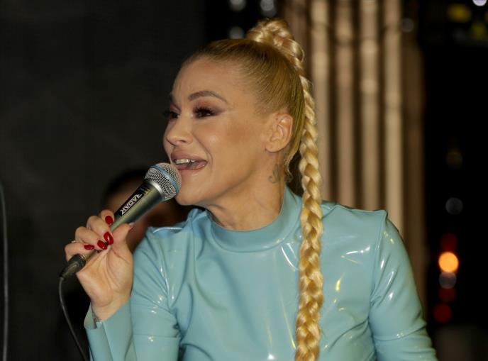 Pevačica je blistala u plavoj haljini od lateksa koja joj je savršeno istakla obline.