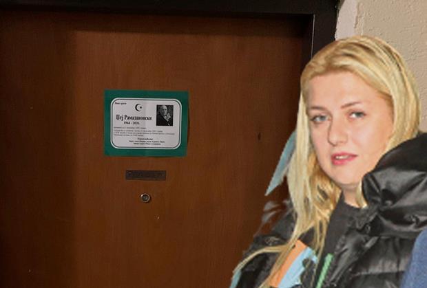 Na vratima stana Andrijane Tomanić, pevačeve menadžerke i partnerke, stoji umrlica Džeja Ramadanovskog.