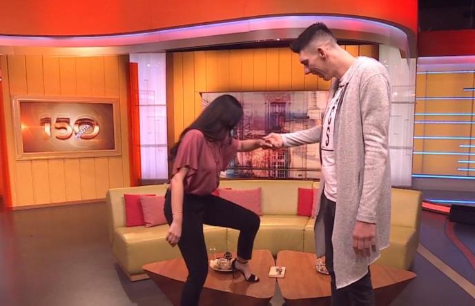 Dalibor je visok 225cm, a Kilibarda se u jednom trenutku popela na sto, kako bi izjednačila svoju visinu sa gostom.