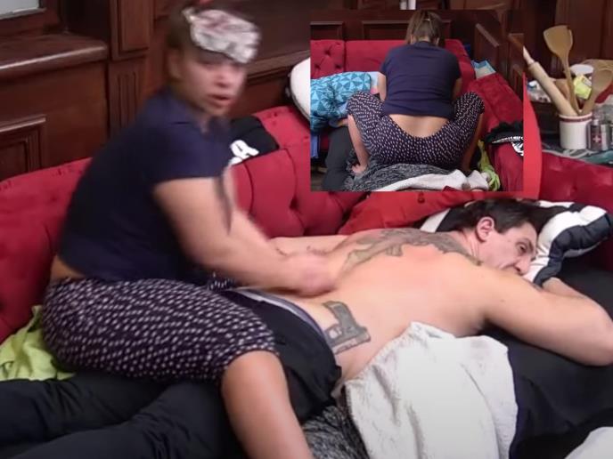 Nakon što je upotrebila ruke da ga izmasira, Miljana se popela na Kristijanova leđa i krenula da ga gazi. Ona je zatim počela da se spušta, a onda je i sela na Golubovića. Trljala se zadnjicom o njega, kako bi mu pružila dodatni ugođaj, a zatim je završila sa masažom.