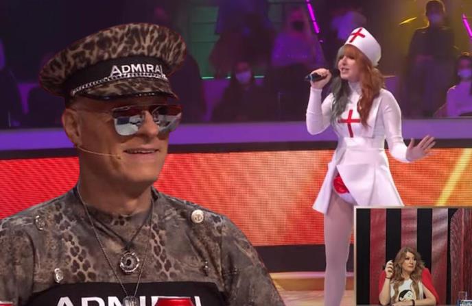 Međutim sve je iznenadila kada se na sceni pojavila odevena u kostim medicinske sestre, dekorisan sa dva crvena krsta, dok se ispod kreacije nazirao veš koji je bio ukrašen crvenom ružom.