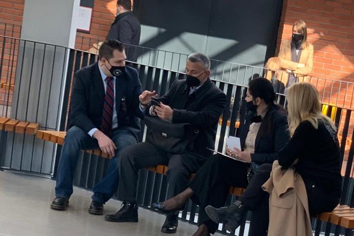 Ekipa Kurira je uspela da uslika Mirjanu i njenog sina Devina u pratnji bliske prijateljice i advokata koji čekaju da uđu u sudnicu.