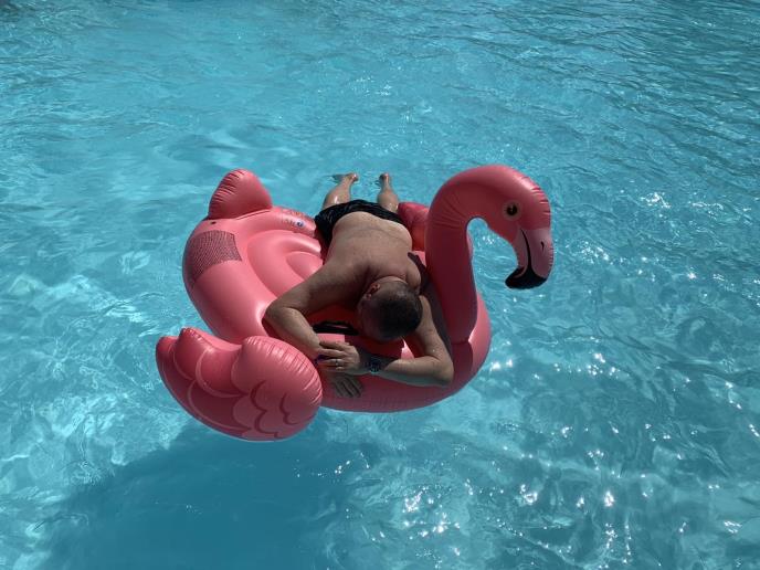 Na njima možete da vidite da Đani zaštitnu masku ne skida ni u vodi, a najbolji prijatelj u bazenu mu je ružišasti flamingo na nadavavanje, od koga se ne odvaja. Toliko ga je zavoleo, da i leži i odmara na njemu, pa ga nosi i na glavi, a kako kaže, najviše mu se sviđa, zato što mu ništa "ne zvoca". Kako li će se odvojiti od njega, prilikom polaska za Beograd, ostaje da vidimo.
