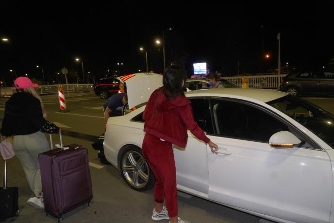Ona je sletela na beogradski aerodrom u kasnim večernjim satima, vidno umorna od puta, ali verovatno i od dobrog provoda.