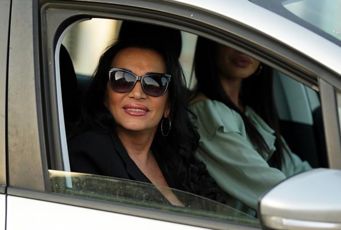 Božinovska je u automobilu sedela na suvozačevom mestu, dok ju je vozila ženska osoba. Ona je imala crne sunčane naočare, kosu je blago uvila, a blistala je u elegantnom crnom odelu.
