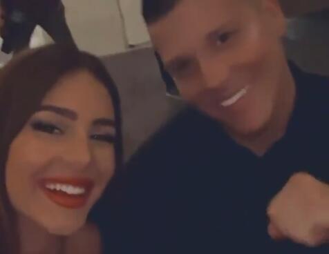 U njenom društvu našao se pevač Sloba Radanović, a oboje su bili vidno raspoloženi i osmeh nisu skidali sa lica.