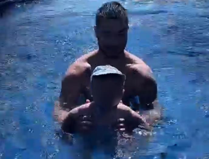 Šijan je lep i sunčan dan iskorisio kako bi sa najmlađim članom porodice Ražnatović uživao i brčako se u bazenu.