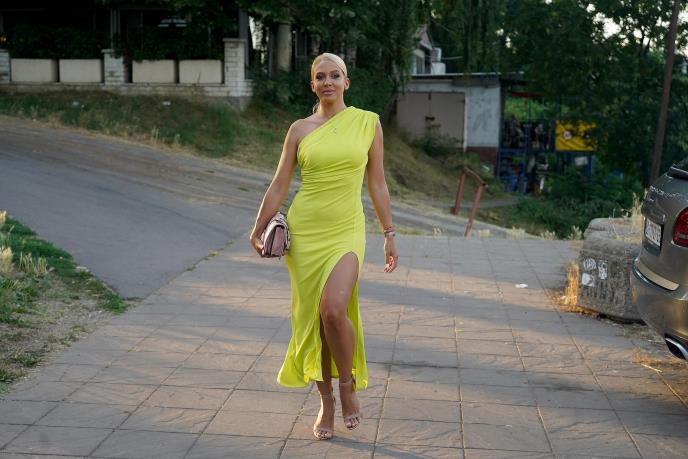 Žuta haljina istakla je Miličinu liniju, a iz dubokog šlica sevale su vitke noge.