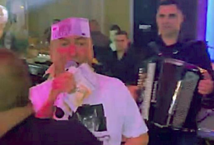 Naime, njega su gosti sve vreme kitili novčanicama koje je držao i u rukama, ali i na čelu. Sudeći po video snimcima on je za nekoliko pesama otprilike zaradio nekoliko hiljada evra, tj oko tri prosečne godišnje plate.