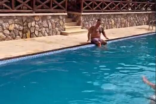 Nije bilo mnogo ljudi, pa je Kristijan neko vreme imao bazen samo za sebe. Dok se on rashlađivao u vodi, oni koji su ga prepoznali glasno su ga komentarisali. A najviše pažnje je privukao kada je na ivici bazena uradio stoj na rukama i tako skočio u vodu.