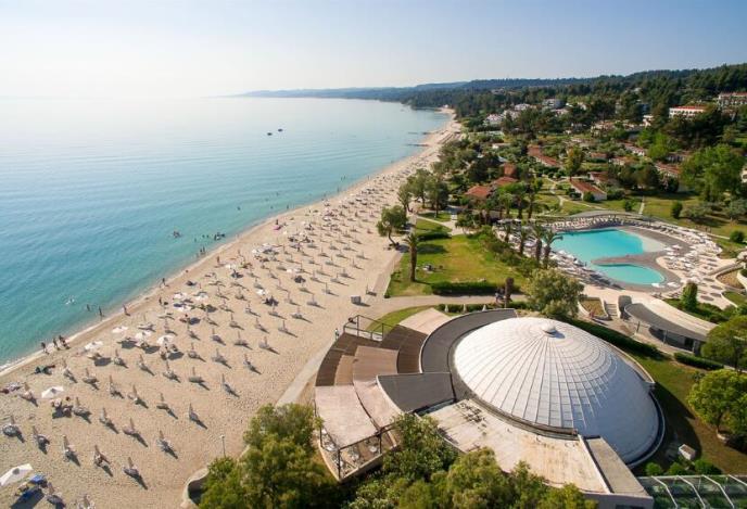 Za sve hedoniste pravi izbor je čuveniPorto Carras Meliton Hotel & Spa 5*na Sitoniji. Već od 31.7 mesta ima za boravak na 7 i 10 noćenja uz uslugu polupansiona po najnižoj ceni od 1555 evra (cena izražena po SOBI). Ista cena važiće do 21.8, a onda ona kreće da opada (u septembru je čak 1110 evra po sobi). Hotel je udaljen 2km od Neos Marmarasa i nalazi se na samoj peščanoj privatnoj plaži dužine oko 2 kilometara.