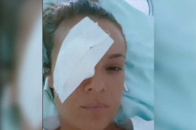 Ona se obratila svojim pratiocima i sve okrenula na pozitivu, iako joj je jedno oko prekriveno zavojima.