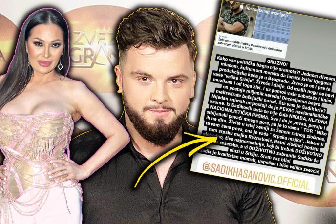 - Živite u istoj zemlji sa ženom ratnog zločinca, ta vam žena peva, ona je vaša "srpska majka". Je*em li vam srpsku majku Ražnatović. Ratni zločinci hodaju slobodno, žive najnormalnije, koji bi trebalo doživotno da budu iza rešetaka, a vi doživotno zabranjujete Sadiku da ulazi u Srbiju. Sram vas bilo. Sadik je kvalitetan momak, uspešan i biće velika zvezda - pisalo je u ovoj poruci na Sadikovom Instagram storiju.