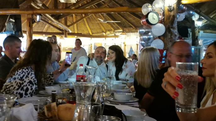 Muzika je već uveliko počela da zabavlja goste, a Miki i Angelina nasmejani su se veselili. Porodica i prijatelji pretežno su na ovom veselju.