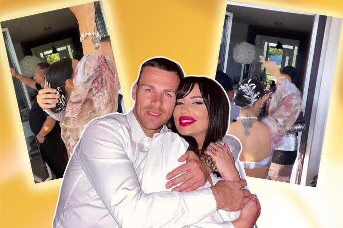 Pevačica za najsrećniji dan u životu nije odabrala tradicionalnu belu venčanicu, već je izabrala letnju cvetnu haljinu sa dugačkim rukavima i otvorenim leđima. Da je u pitanju proslava venčanja, možete videti i na fotografijama sa proslave, koje vam ekskluzivno donosimo u nastavku, a na kojima se vide mlada i mladoženja sa venčanim burmama na rukama.