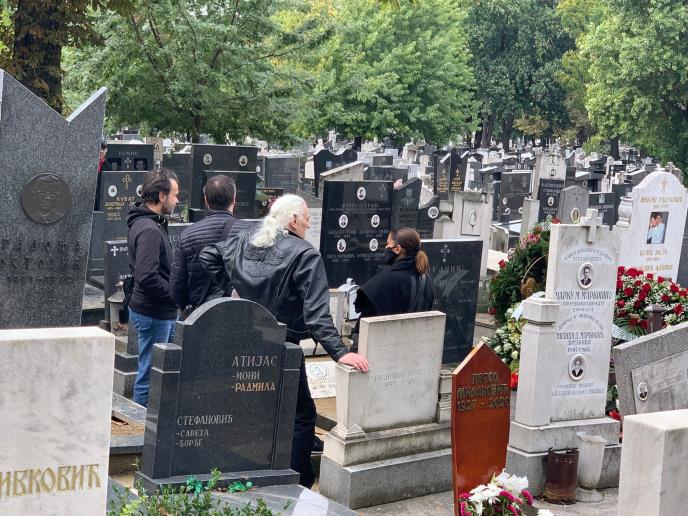 Oliver Mandić, Jelena Karleuša, Mina Kostić, suprug Futa i sin Laća nemo su stajali petnaestak minuta, a onda je Laća groblje napustio u pratnji Olivera Mandića i prijatelja.