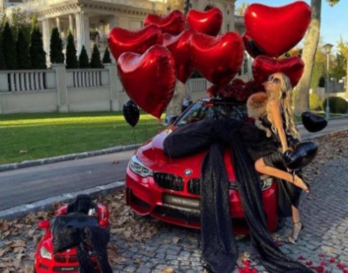 Naime, ona je sa svojim pratiocima podelila fotografije na kojima pozira pored crvenog automobila marke BMW, kao i pored balona u obliku srca.