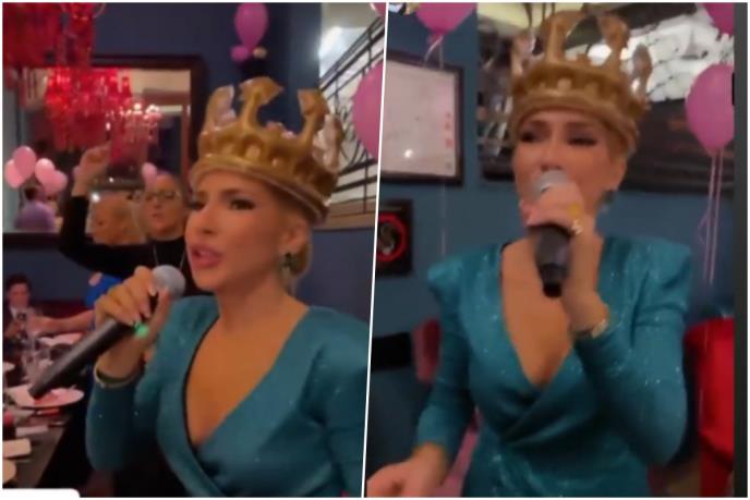 Sada su osvanuli snimci sa žurke na kojima vidimo Jovanu u nesvakidašnjem izdanju - obučena u zelenu mini haljinu sa šlicem, Jovana je ponovo stavila krunu na glavu i zgrabila mikrofon.
