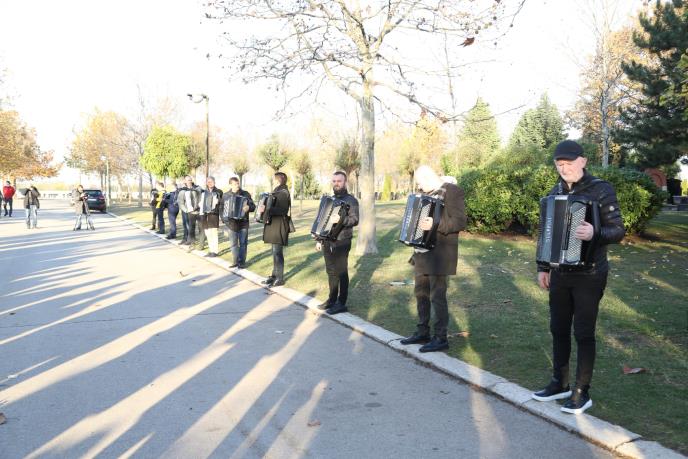 Kada je krenula povorka prema koji su došli da poslednji put ispoštuju Marinka Rokvića, a harmonikaši su pratili uz stihove njegove pesme "Jedina moja" što nikoga nije ostavilo ravnodušnim.