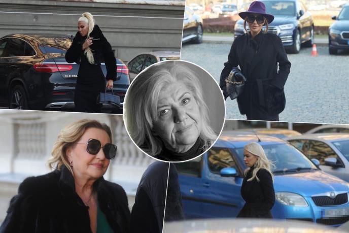 Ana Bekuta, koja će održati govor, došla je sređena u dugoj zelenoj haljini i u bundi, Jelena Karleuša je sva u crnom bez reči ušla u Skupštinu grada, dok je Ana Nikolić sa ljubičastim šeširom i crnim kompletom sa na naočarama došla da isprati svoju Marinu.