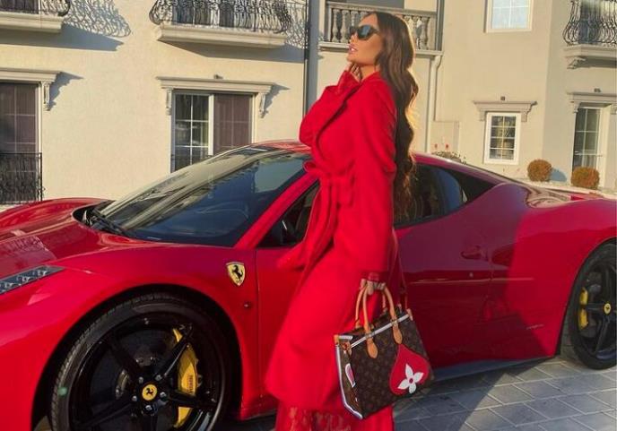 Ana Korać je sada objavila fotografiju na kojoj pozira u crvenom kaputu i cipelama, pored crvenog ferarija, tašnom svetski poznatog brenda koja ima crvene detalje.