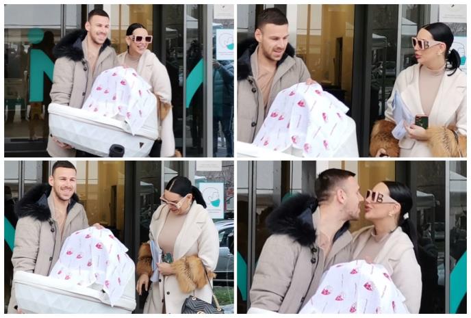 Pevačica Katarina Grujić izašla je danas iz porodilišta, a njen izabranik Marko Gobeljić došao je po nju i ćerkicu Katju.