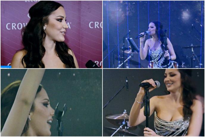 Međutim, ono što je svima zapalo za oko je Aleksandrin izgled i prelepa uska novogodipnja toaleta u kojoj se pojavila na nastupu, na dočeku.